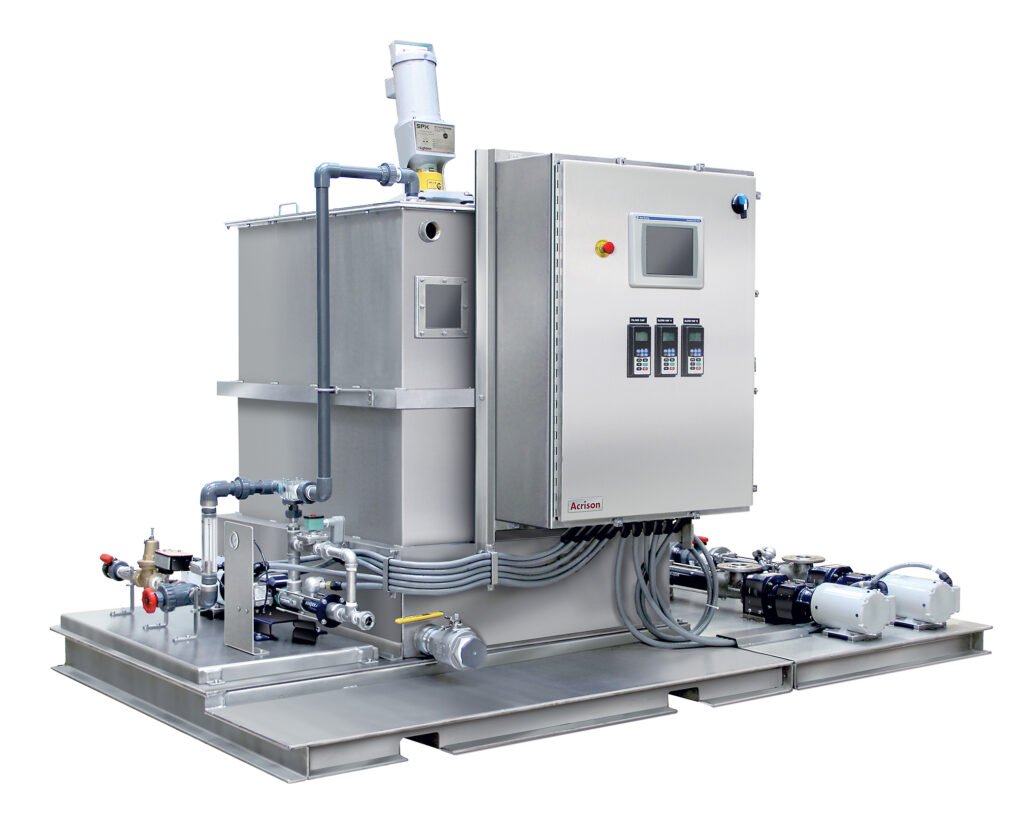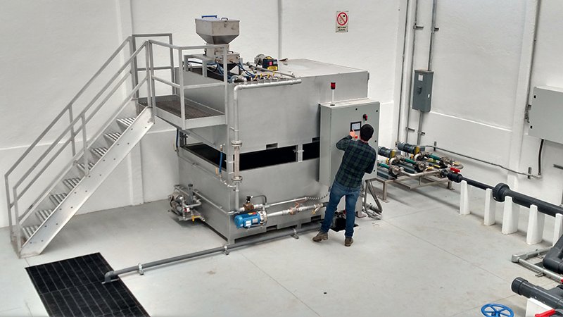 Los sistemas de dosificación de polímero son sistemas diseñados para añadir polímeros a una corriente de agua o lodo con el fin de mejorar el proceso de clarificación y sedimentación. Los polímeros son sustancias químicas que, cuando se añaden al agua, pueden ayudar a que las partículas sólidas se aglomeren y se separen con mayor eficacia, lo que facilita la operación de los clarificadores y otros equipos de sedimentación.Estos sistemas de dosificación de polímero se utilizan en aplicaciones de tratamiento de aguas residuales para mejorar la clarificación y reducir la cantidad de lodo producido. Algunas de las ventajas de usar polímeros en el tratamiento de aguas residuales incluyen la reducción de costos de manejo de lodos, la mejora de la eficiencia de sedimentación y la reducción del uso de productos químicos coagulantes.Los sistemas de dosificación de polímero suelen incluir tanques de preparación de polímero, bombas dosificadoras, sistemas de mezcla y controladores automáticos que regulan la cantidad de polímero añadido según las condiciones de flujo y las características de las aguas residuales.