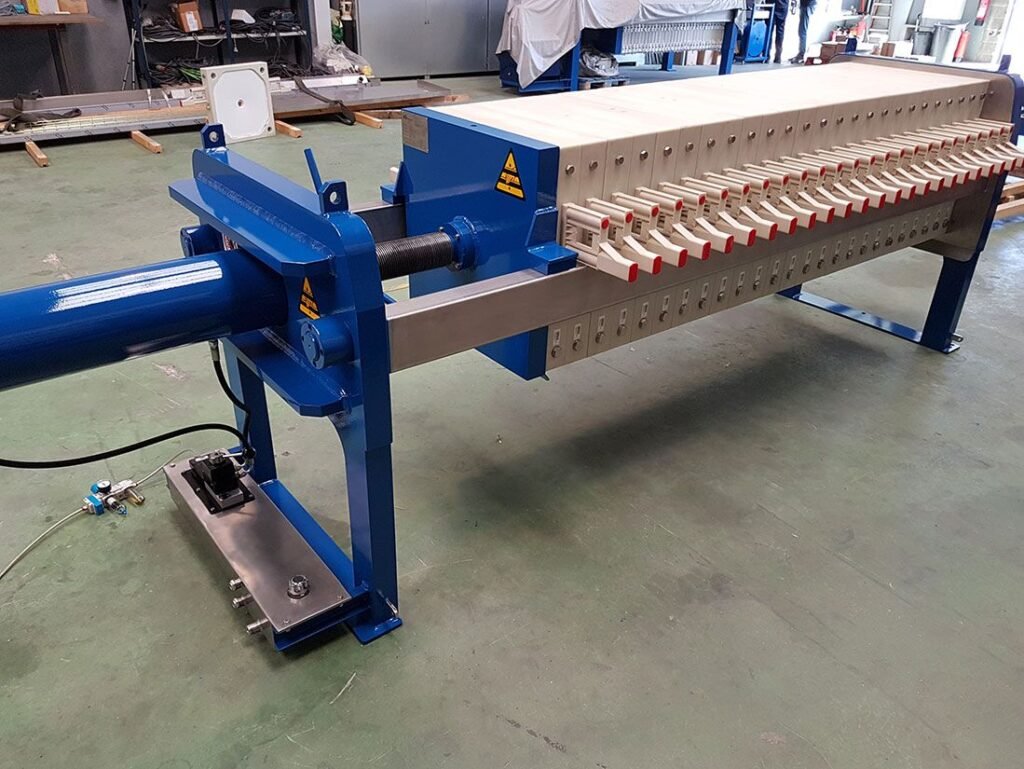Una vez que se ha completado el proceso de filtración, las placas se separan y los sólidos se descargan, dejando espacio para la siguiente carga. Las placas deben limpiarse y mantenidas regularmente para garantizar un rendimiento continuo y eficiente del filtro prensa.